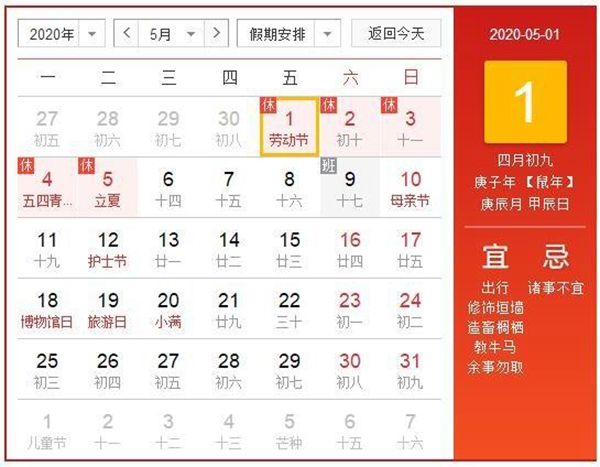 正達(dá)2020年勞動(dòng)節(jié)放假調(diào)休共5天,時(shí)間為2020年5月1日(星期五)至5月5日(星期二),5月6日(星期三)開始正常上班,其中4月26日(星期天)、5月9日(星期六)正常上班。